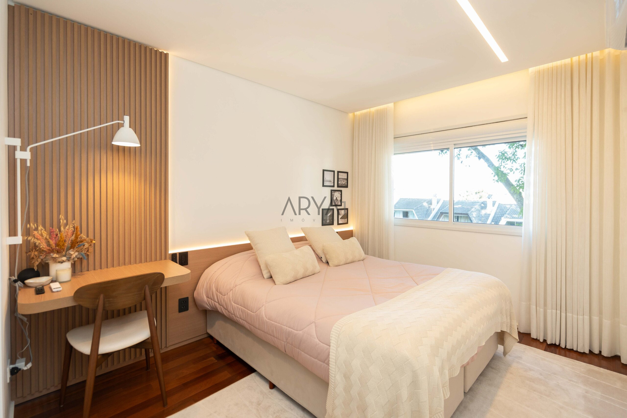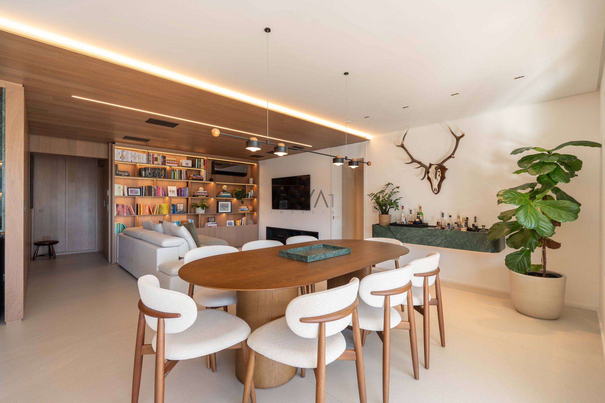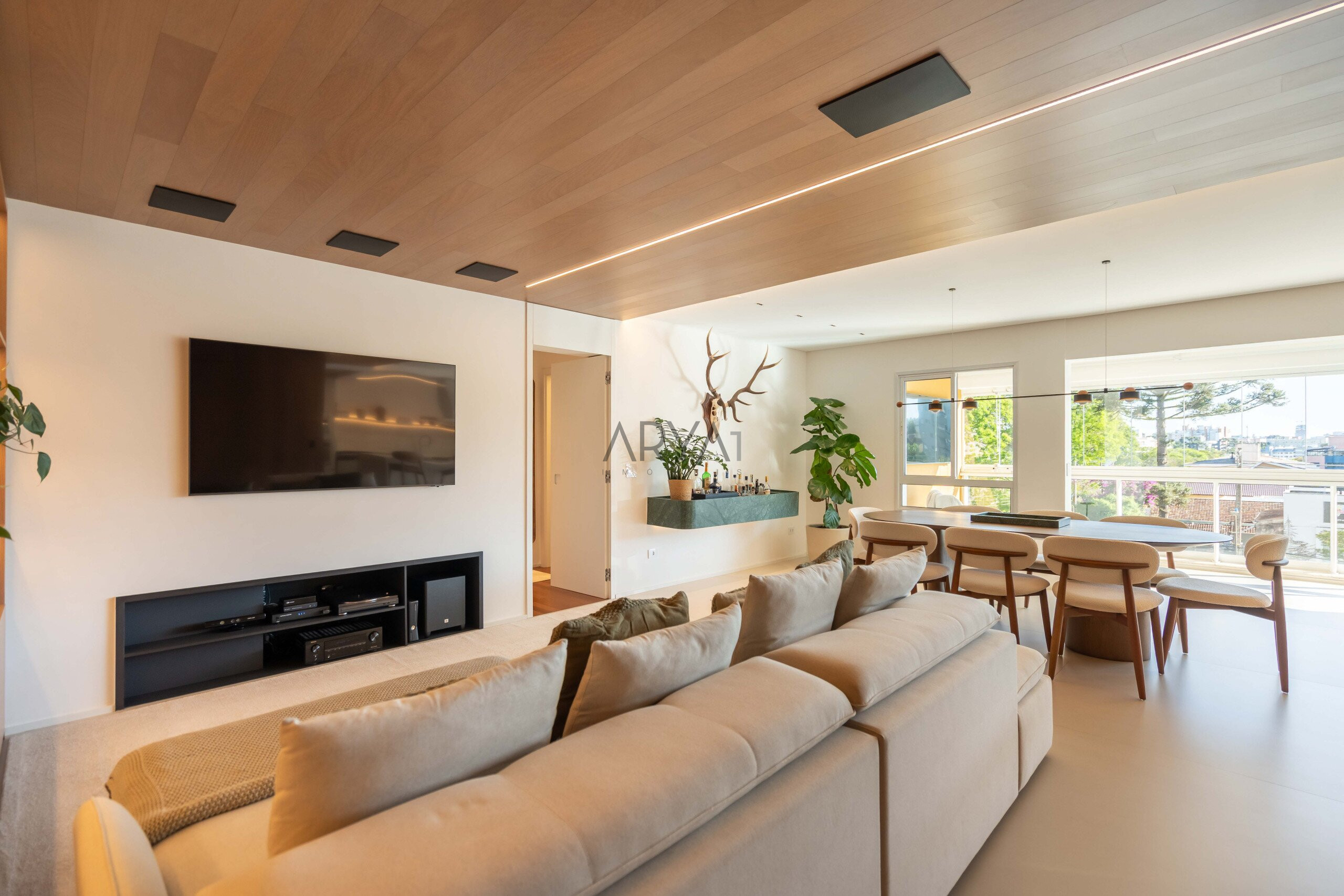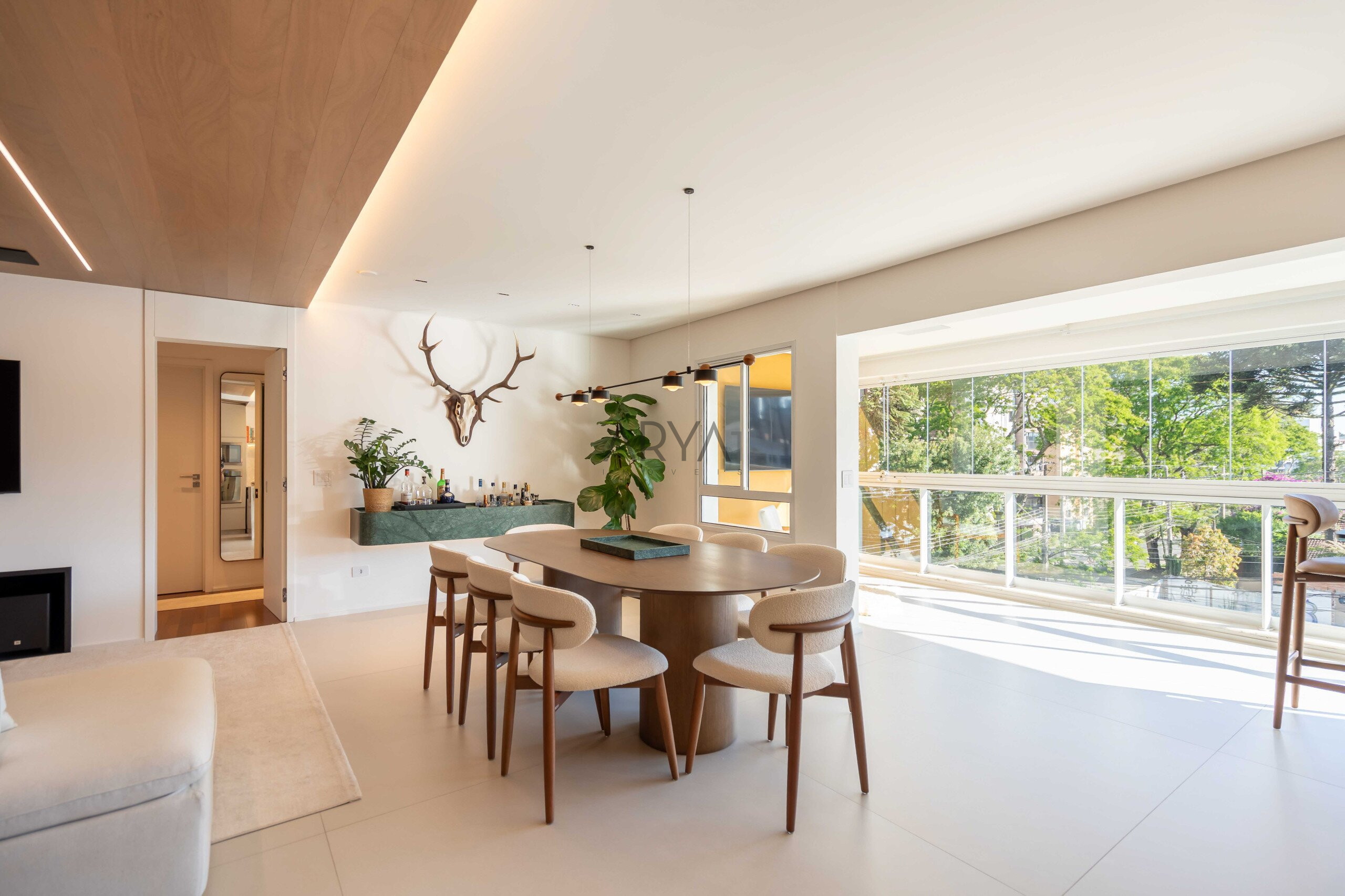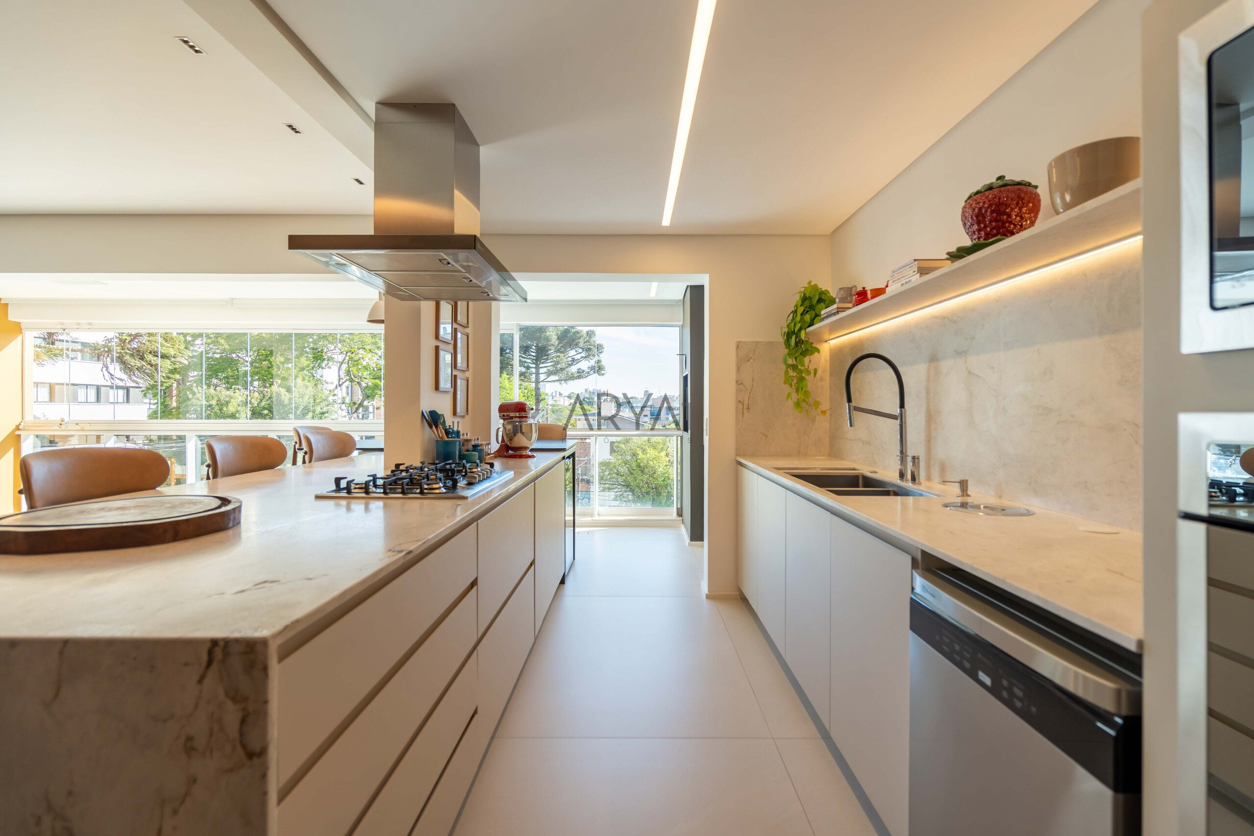 Sejam bem-vindos ao mundo do design contemporâneo, sofisticado, cosmopolita e de personalidade como o público curitibano exige. Estamos vendo aqui um apartamento no condomínio clube Quartier, localizado na Rua José Cadilhe no bairro Água Verde, literalmente um apartamento de revista, publicado na revista Casa e Jardim da Globo.com, a planta conta com 158,14m2 privativos, onde a madeira é a protagonista. A entrada privativa é coberta por painéis de madeira de reflorestamento Tauari Naturalle. Entrando na sala de estar, os painéis continuam no teto e na estante de livros, a sala e sacada contam com sistema de som Denon e caixas de som JBL. O apartamento conta com algumas peças de design e acabamento impecável: área social com piso Porto Bello Barcelona cristal 1,60x 1,60cm, cozinha e lavanderia em mármore Branco Paraná, detalhes na sala e lavabo em mármore verde Guatemala, toda casa é automatizada, sistema Lutron Home Works, o mais completo da marca, integrando persianas, iluminação dimerizada, ar-condicionado, cortinas som, televisões e comando via Alexa. A área íntima é ampla, composta por três suítes confortáveis, com piso em madeira natural Cumaru e banheiros com porcelanato Portobello. Fantástico não é mesmo? Pra você que tem muito bom gosto e adora tudo o que há de melhor para o seu conforto, ligue e agende sua visita!