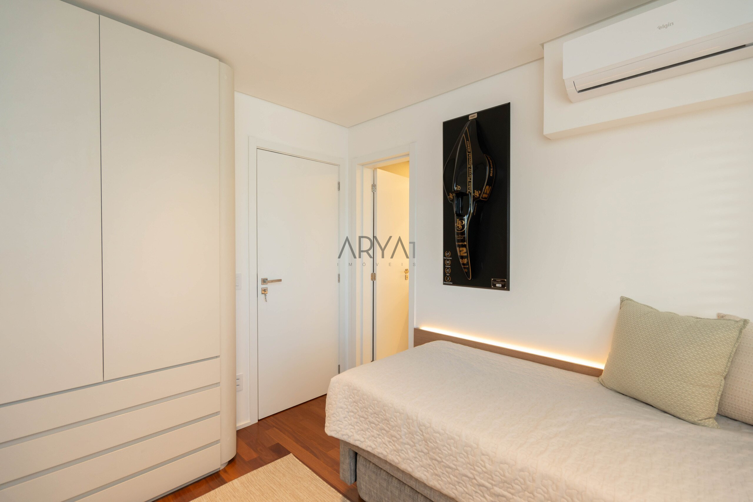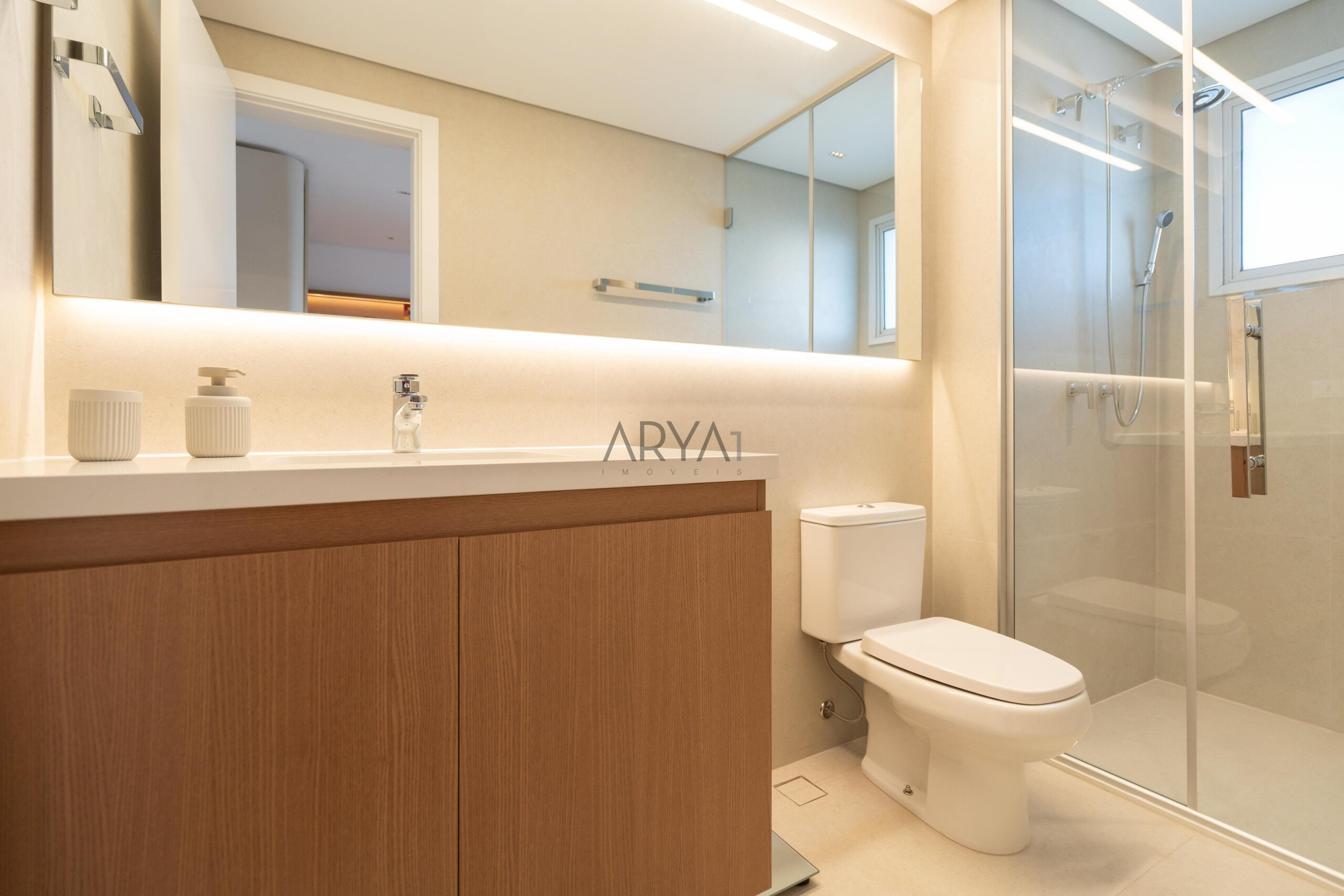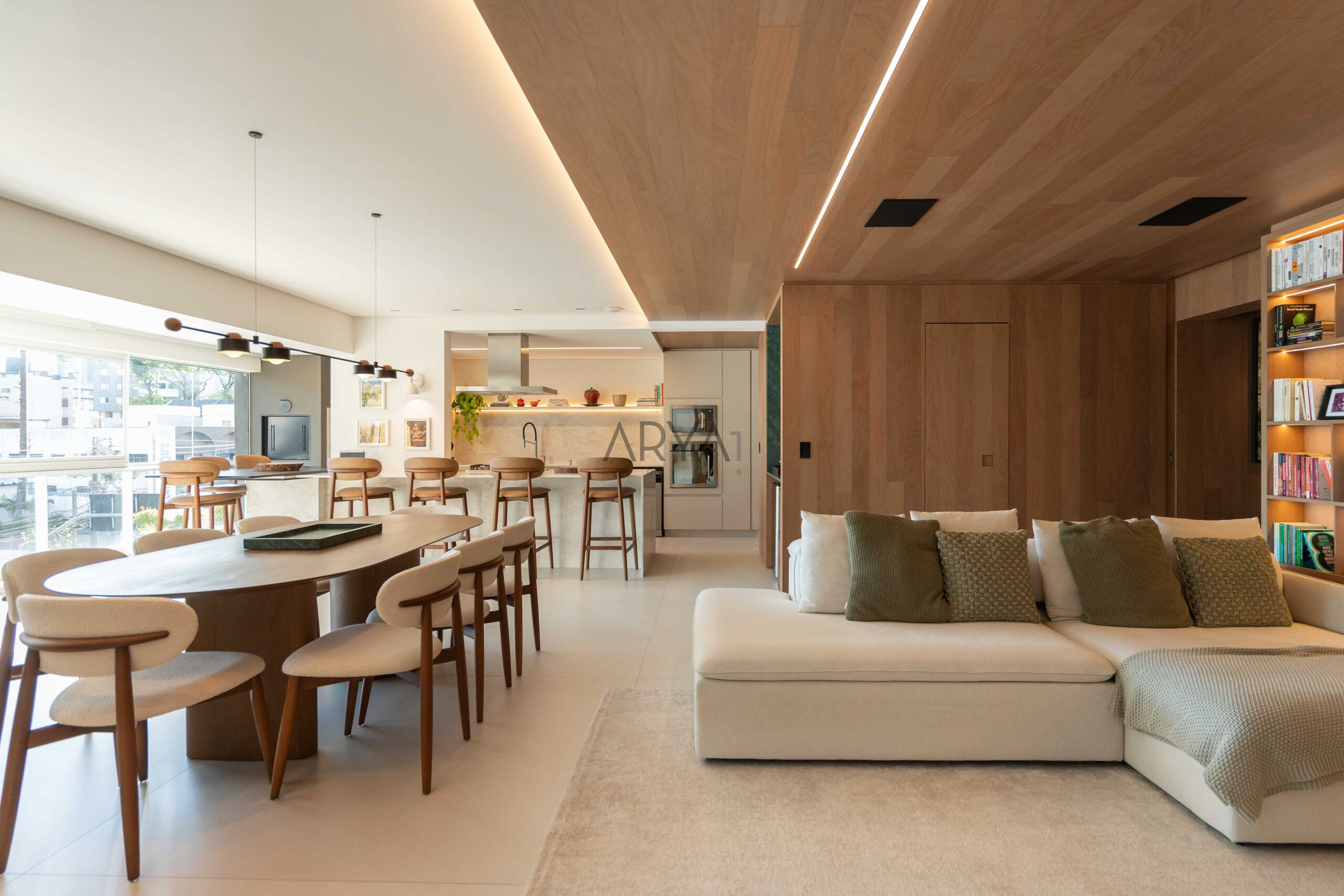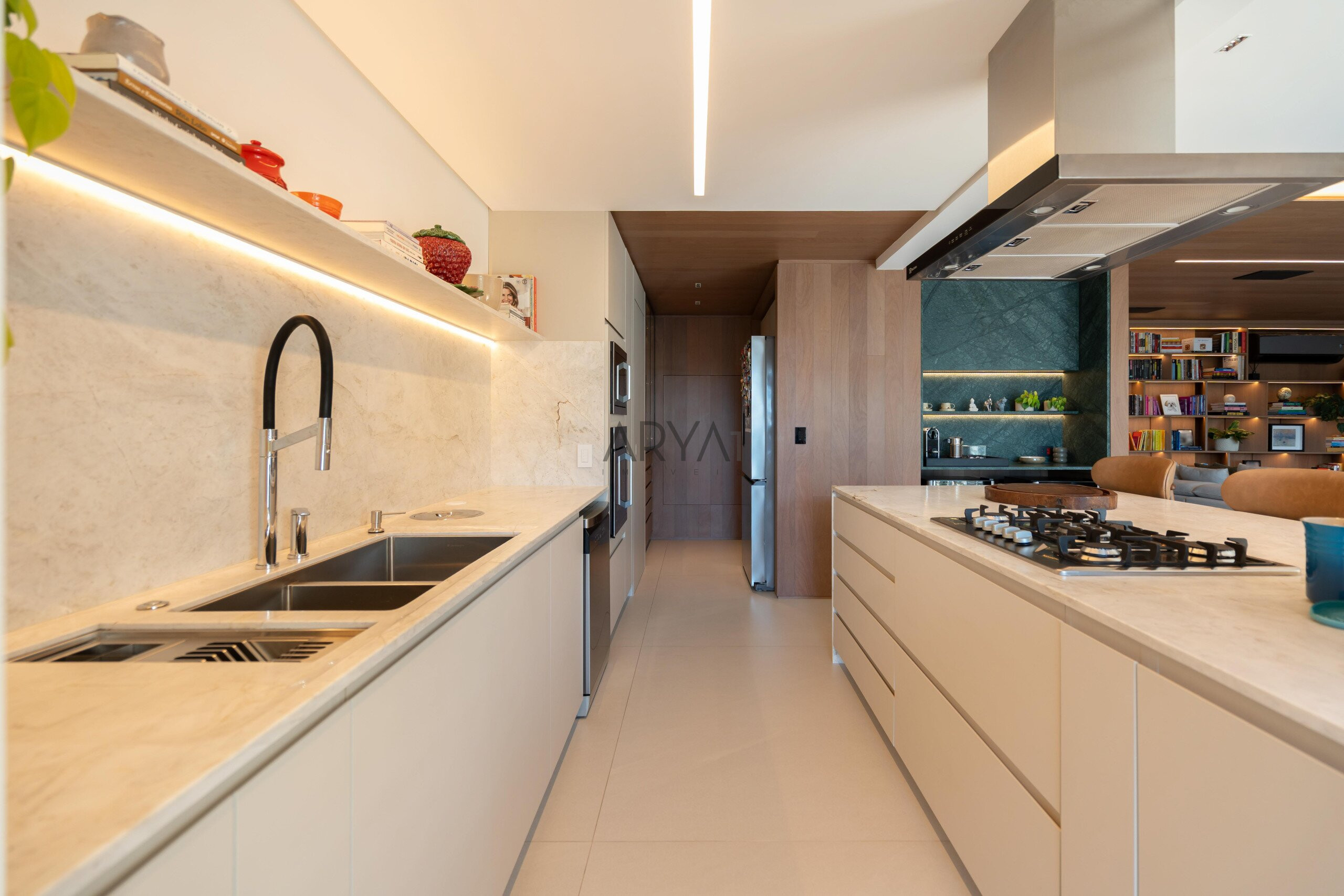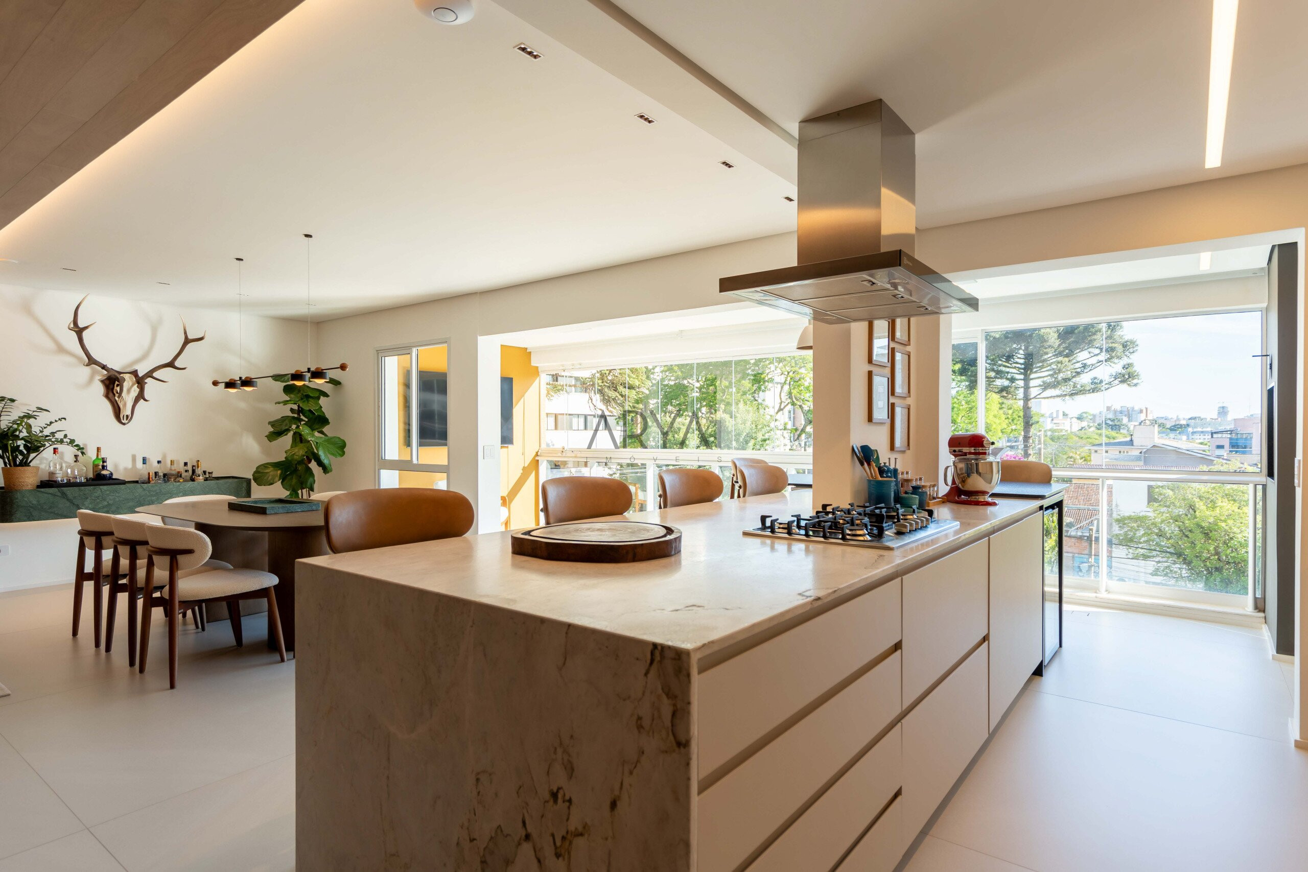Sejam bem-vindos ao mundo do design contemporâneo, sofisticado, cosmopolita e de personalidade como o público curitibano exige. Estamos vendo aqui um apartamento no condomínio clube Quartier, localizado na Rua José Cadilhe no bairro Água Verde, literalmente um apartamento de revista, publicado na revista Casa e Jardim da Globo.com, a planta conta com 158,14m2 privativos, onde a madeira é a protagonista. A entrada privativa é coberta por painéis de madeira de reflorestamento Tauari Naturalle. Entrando na sala de estar, os painéis continuam no teto e na estante de livros, a sala e sacada contam com sistema de som Denon e caixas de som JBL. O apartamento conta com algumas peças de design e acabamento impecável: área social com piso Porto Bello Barcelona cristal 1,60x 1,60cm, cozinha e lavanderia em mármore Branco Paraná, detalhes na sala e lavabo em mármore verde Guatemala, toda casa é automatizada, sistema Lutron Home Works, o mais completo da marca, integrando persianas, iluminação dimerizada, ar-condicionado, cortinas som, televisões e comando via Alexa. A área íntima é ampla, composta por três suítes confortáveis, com piso em madeira natural Cumaru e banheiros com porcelanato Portobello. Fantástico não é mesmo? Pra você que tem muito bom gosto e adora tudo o que há de melhor para o seu conforto, ligue e agende sua visita!