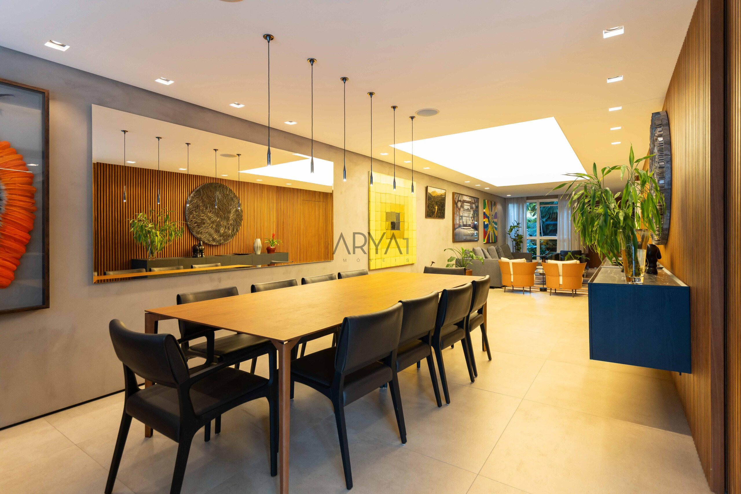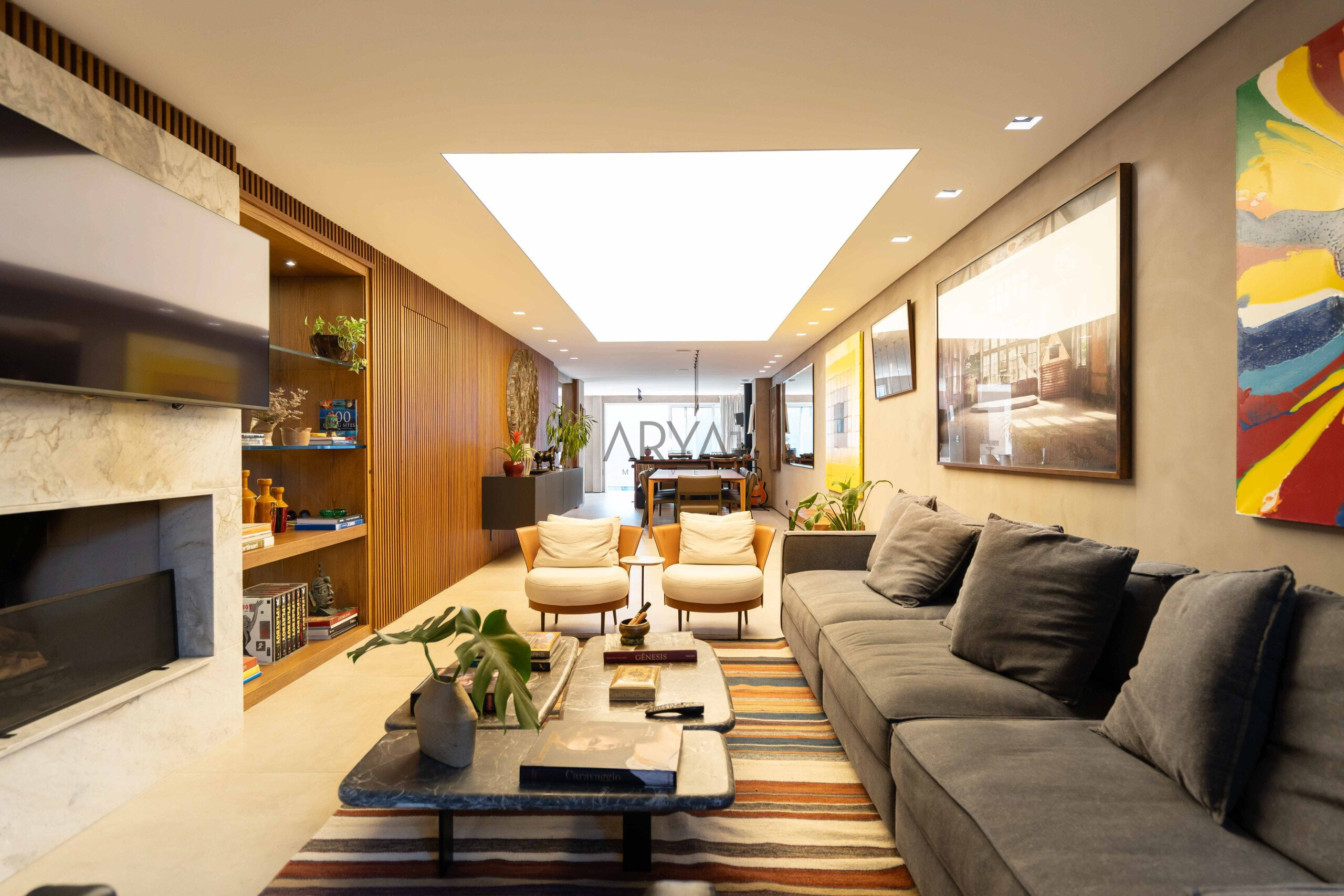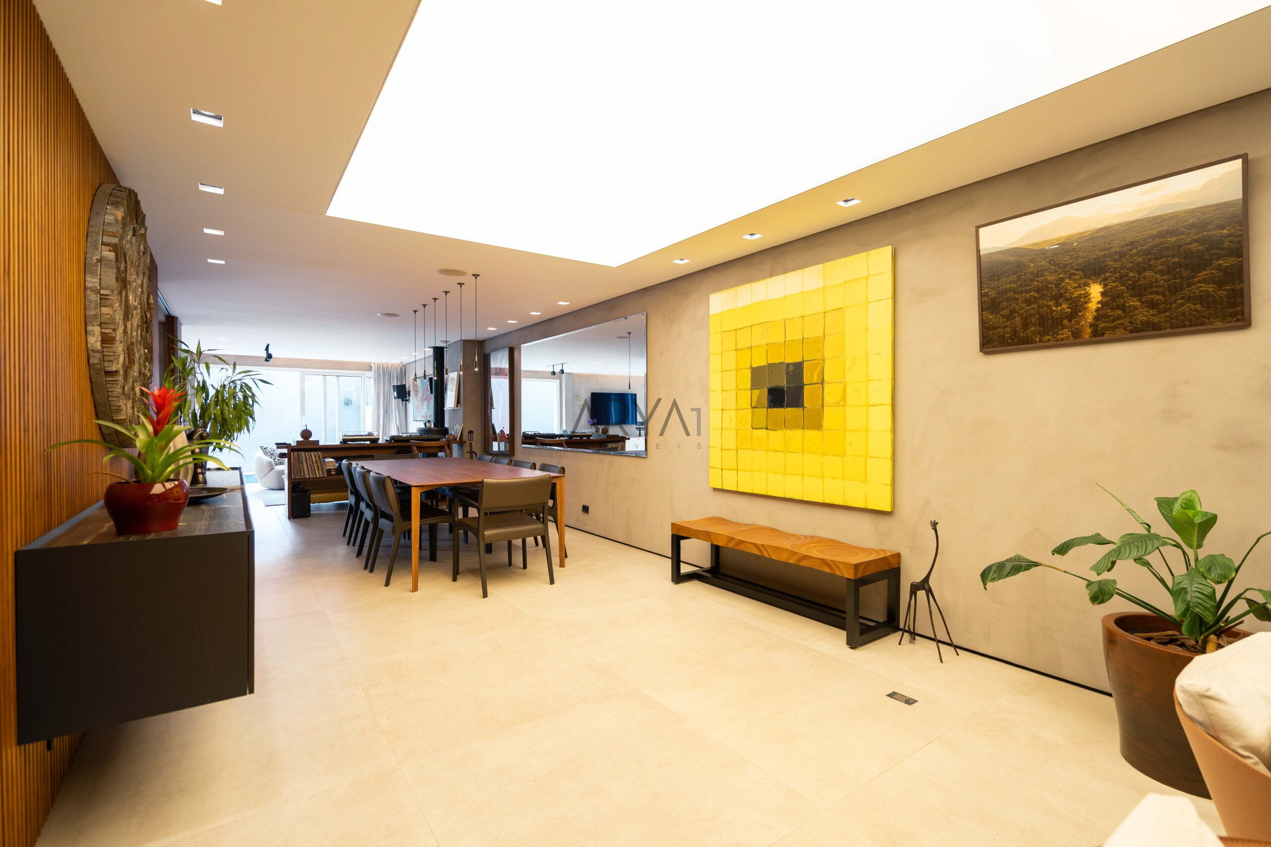 Com 4 suítes amplas, todas climatizadas, a casa impressiona pelo projeto contemporâneo executado pela renomada arquiteta Anna Letícia Loyola e pelos acabamentos de alto padrão. A área social integra ambientes de forma elegante, com sala social marcada por iluminação com tela Tensoflex, rodapé invertido e duas lareiras, criando uma atmosfera sofisticada e acolhedora.