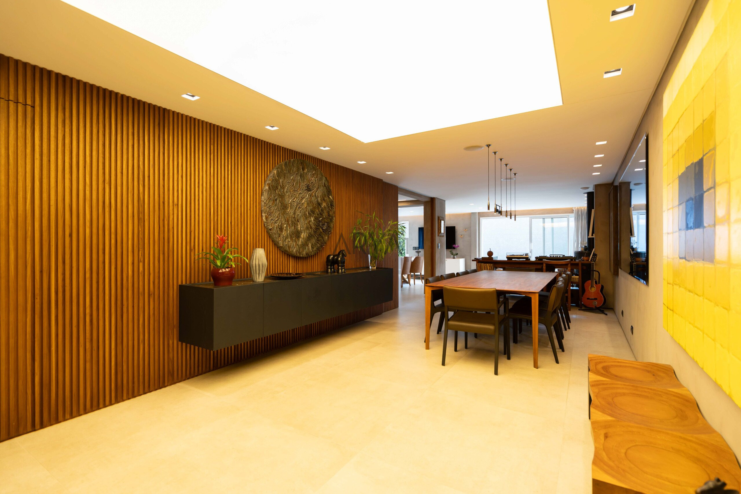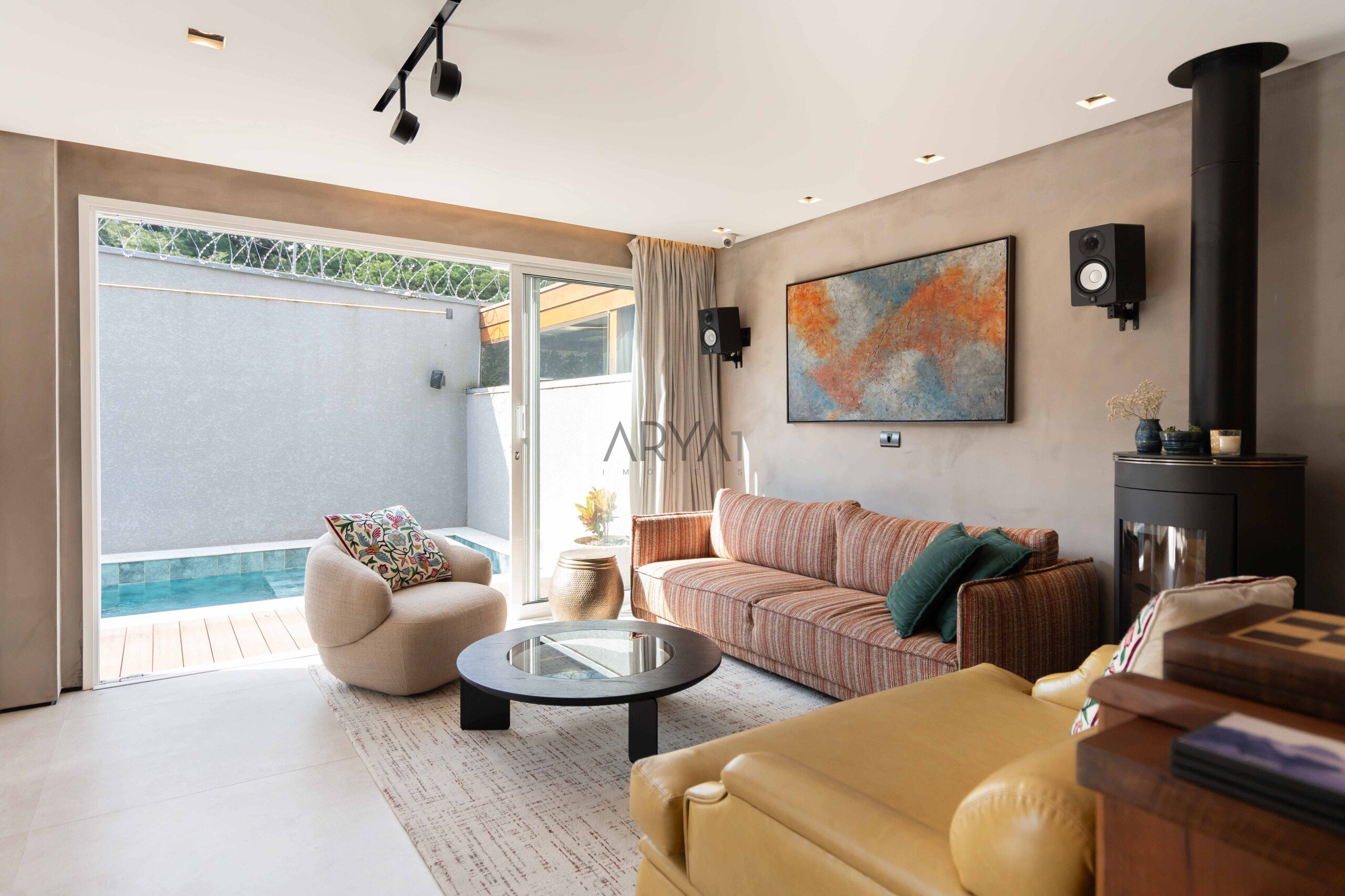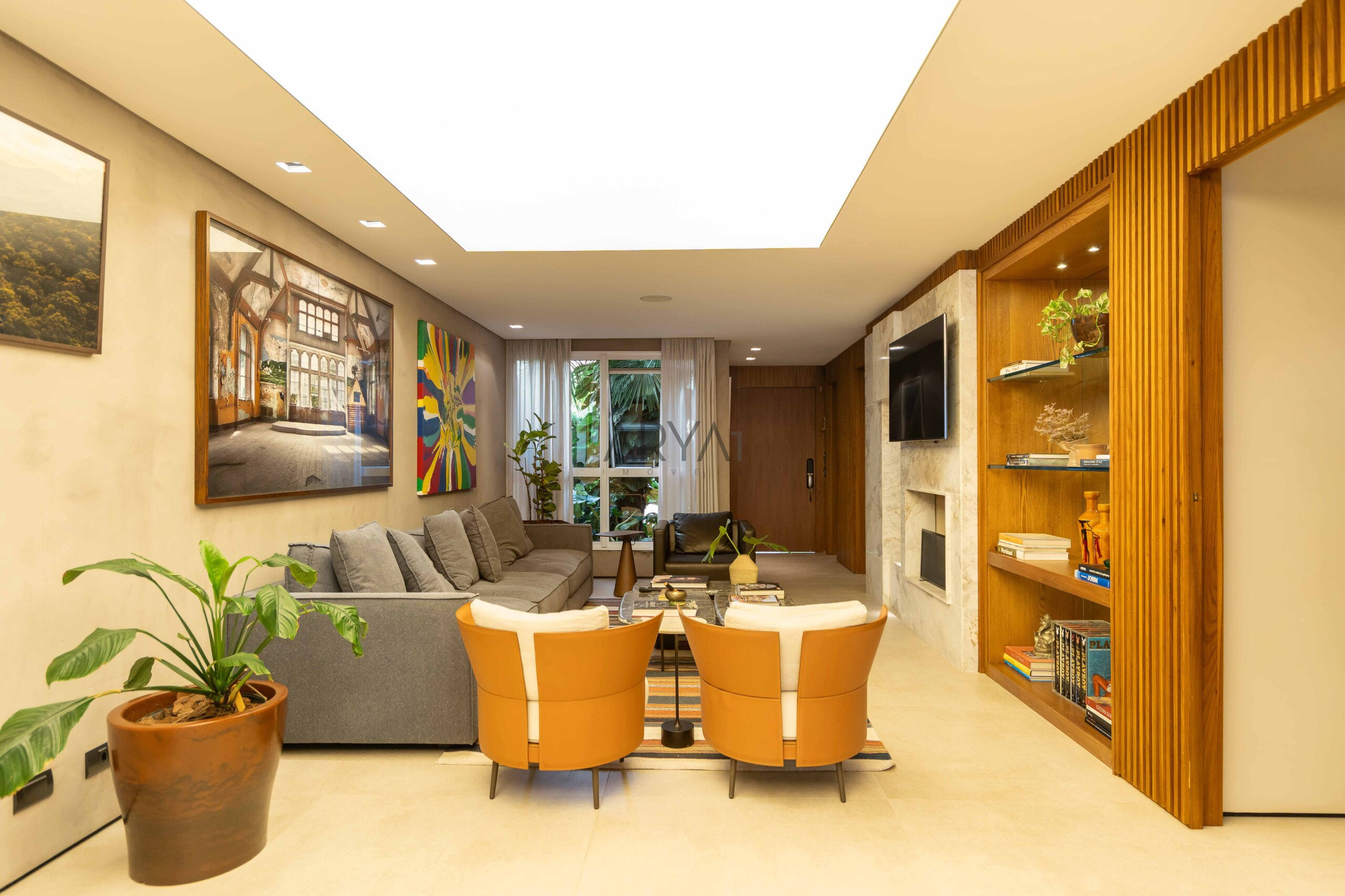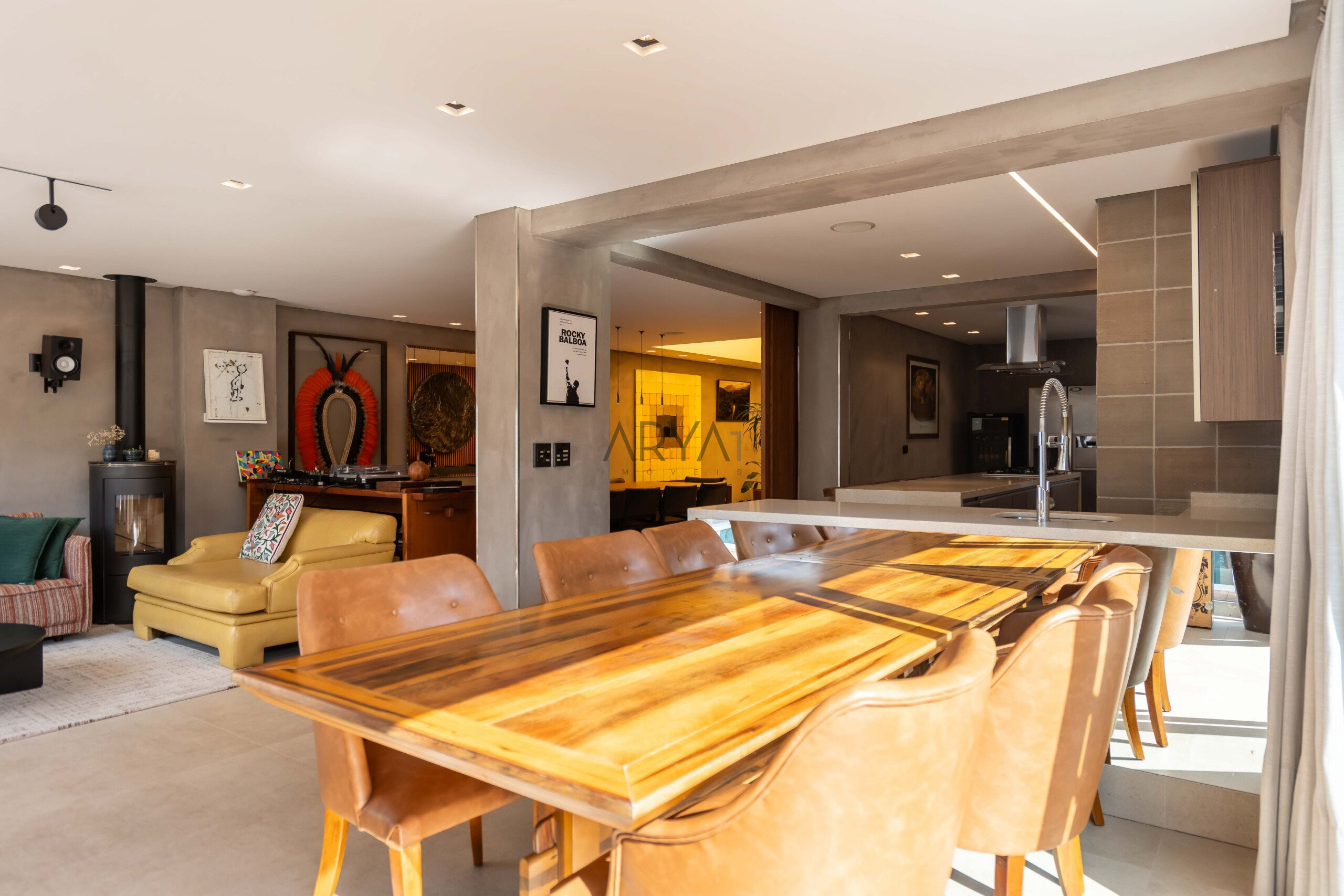 Com 4 suítes amplas, todas climatizadas, a casa impressiona pelo projeto contemporâneo executado pela renomada arquiteta Anna Letícia Loyola e pelos acabamentos de alto padrão. A área social integra ambientes de forma elegante, com sala social marcada por iluminação com tela Tensoflex, rodapé invertido e duas lareiras, criando uma atmosfera sofisticada e acolhedora.