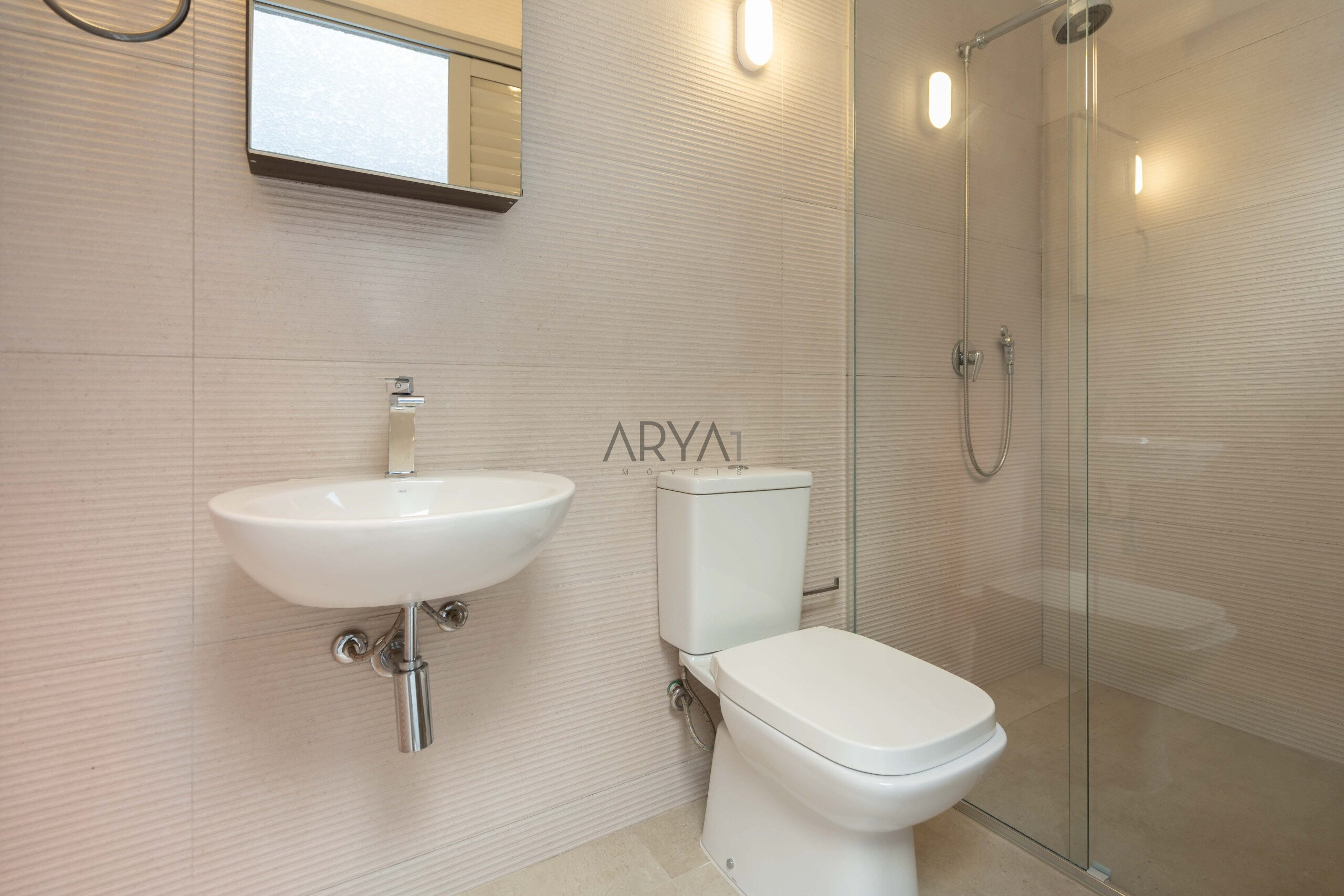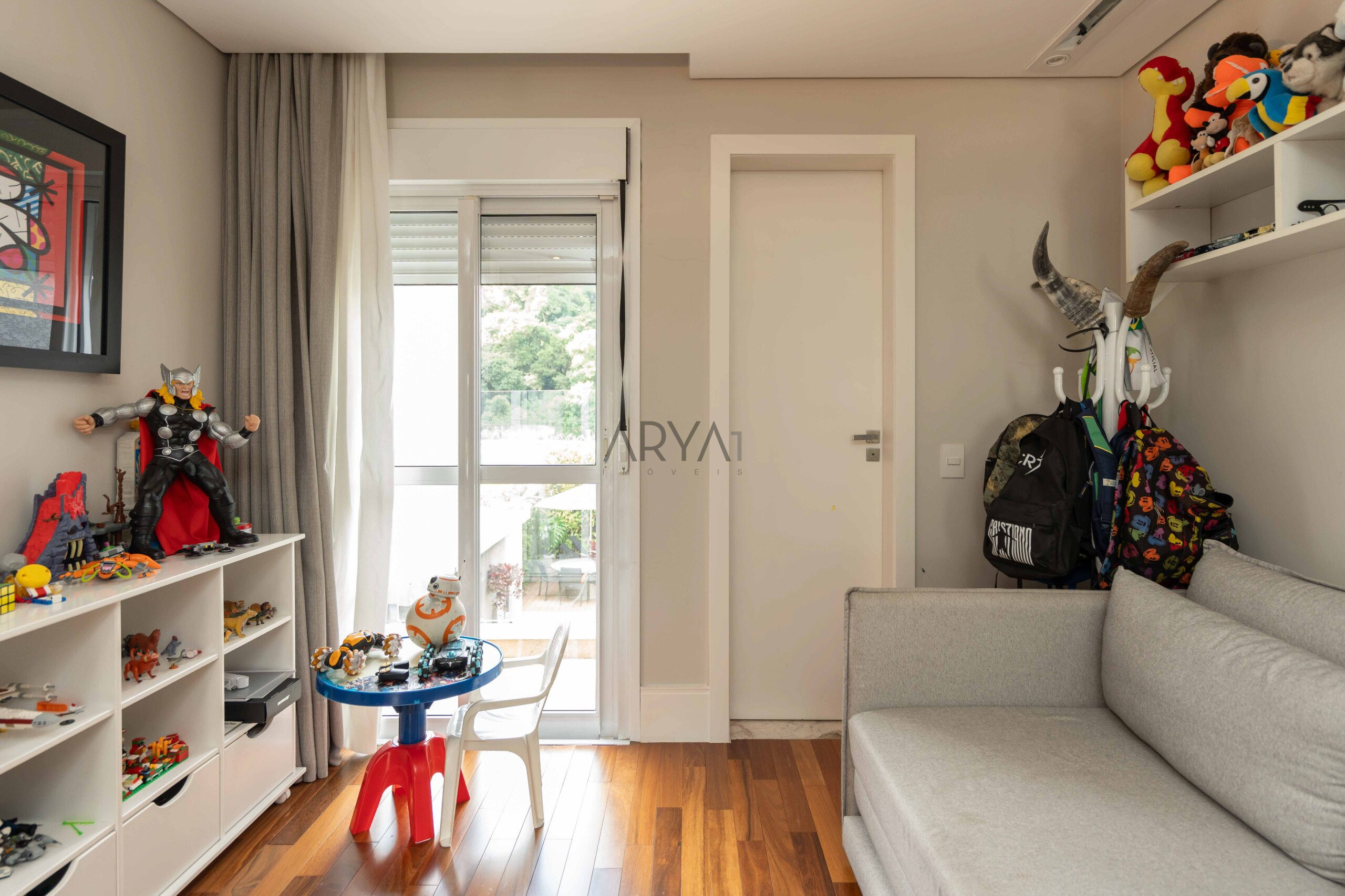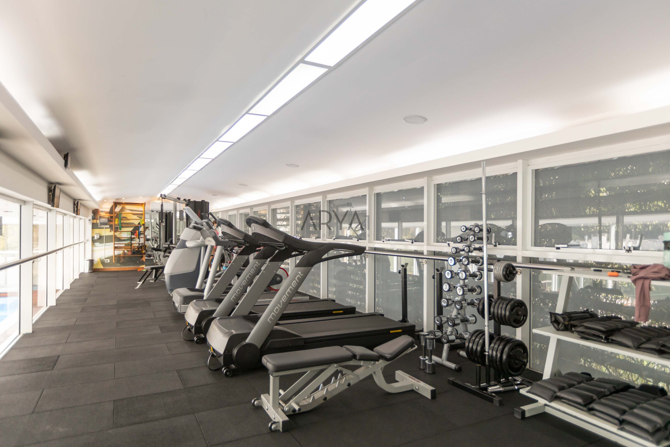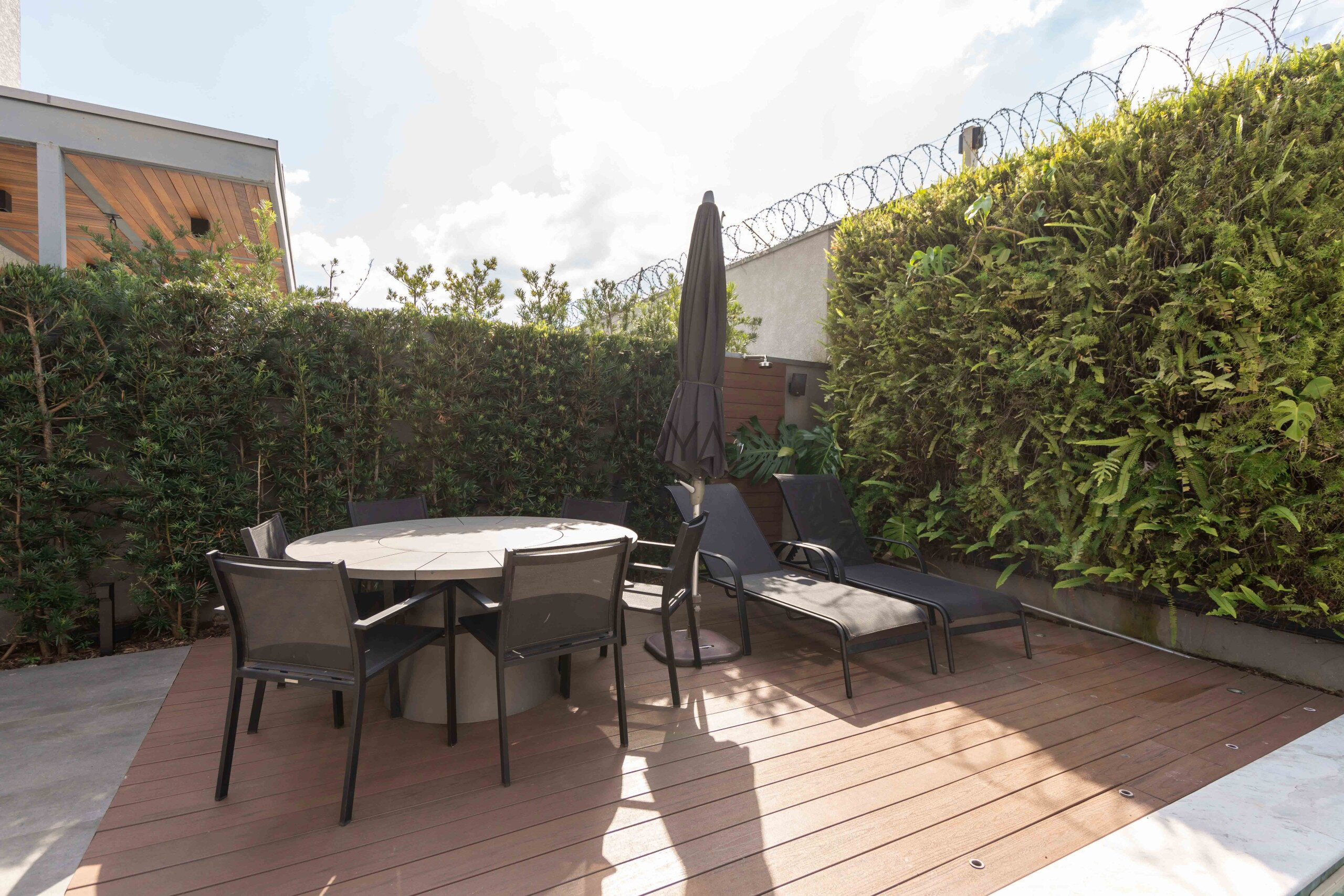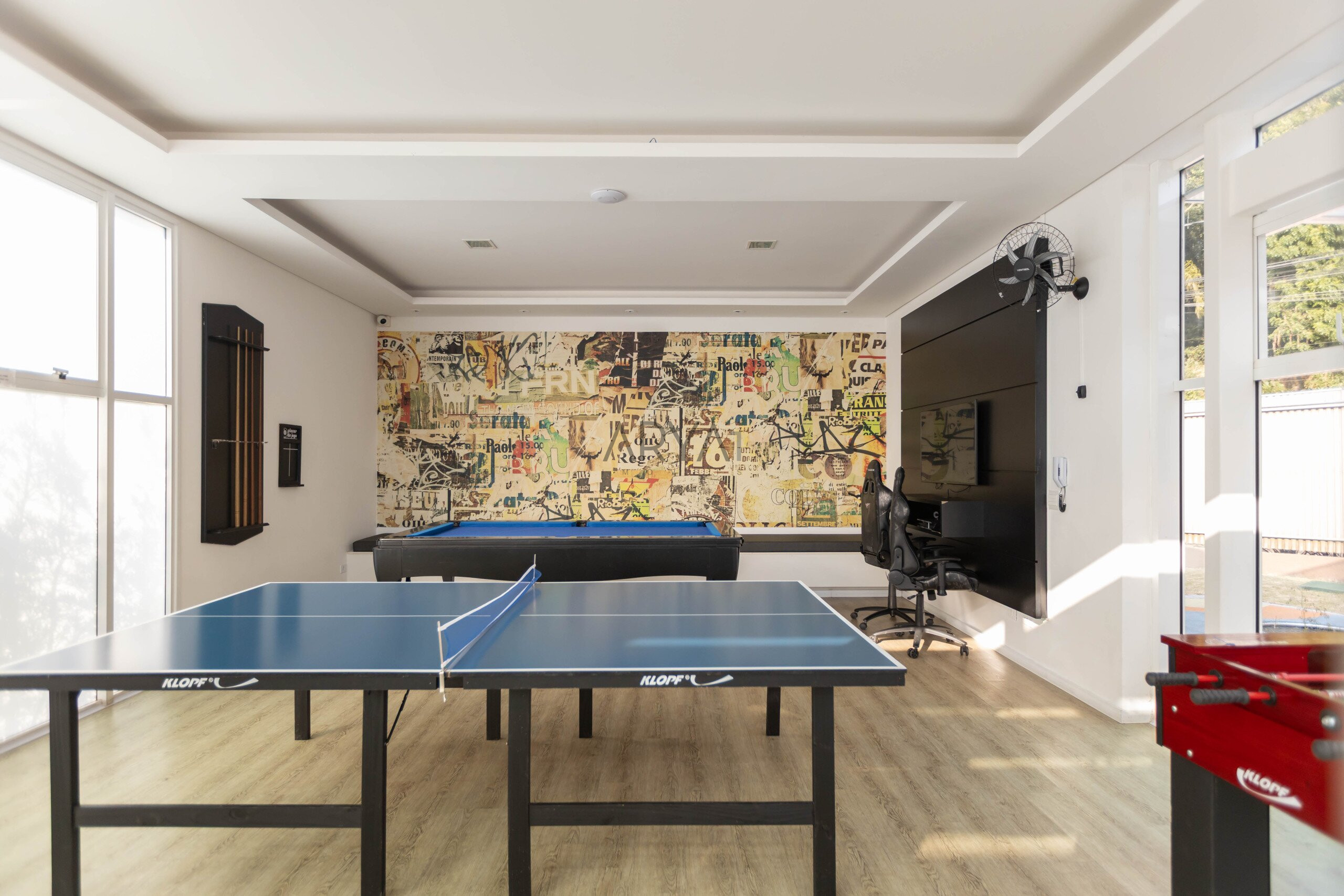 A área externa é um verdadeiro refúgio: piscina aquecida revestida com pedra Hijau, deck em Timbertech, ducha externa, sauna seca com banheiro de apoio e um ambiente ideal para relaxar. A suíte principal se destaca com uma generosa sacada de aproximadamente 30 m².