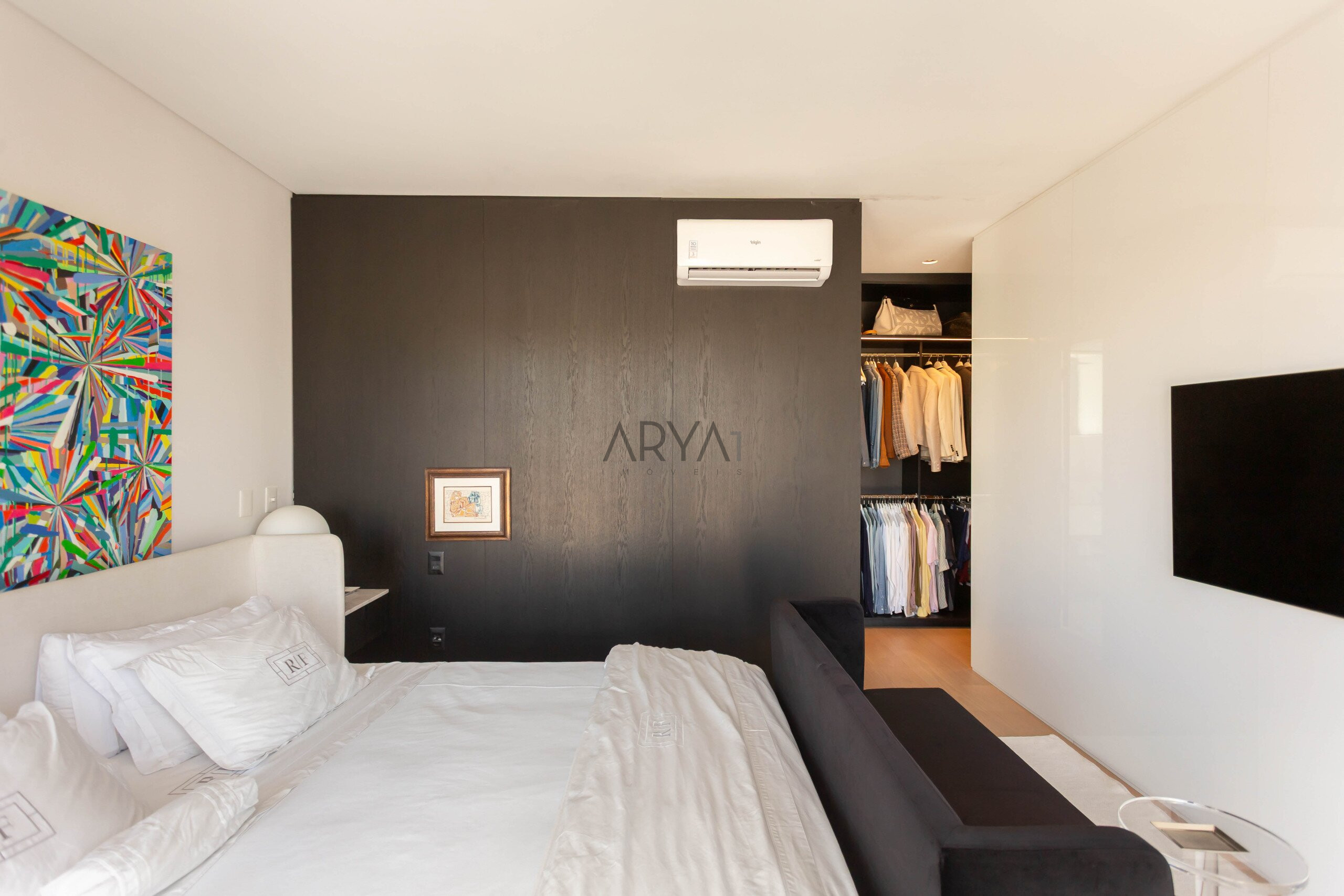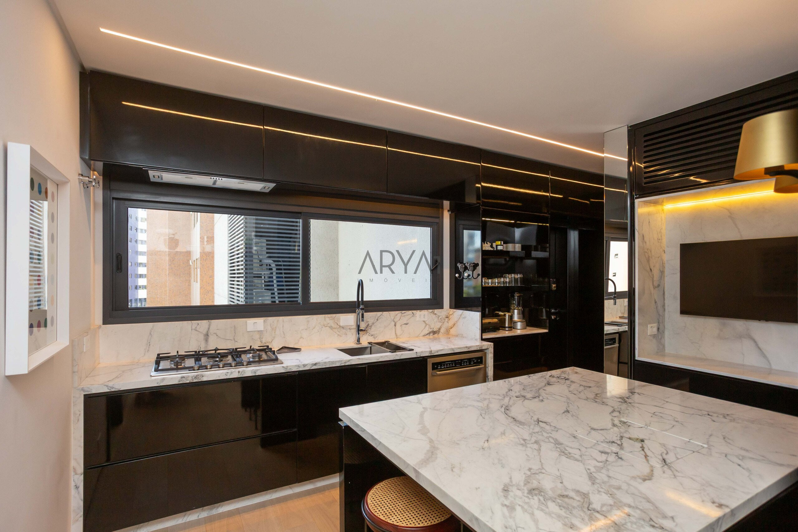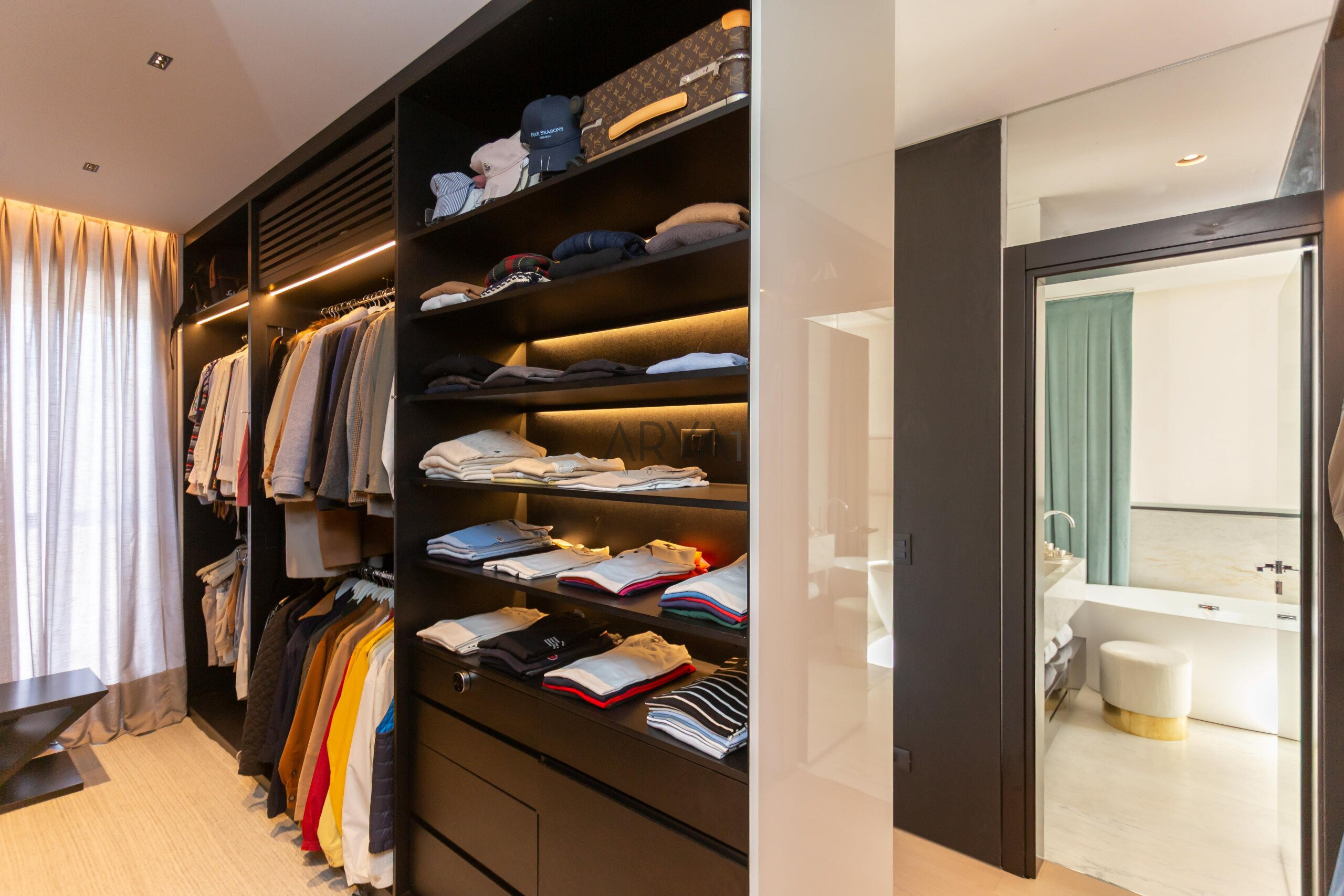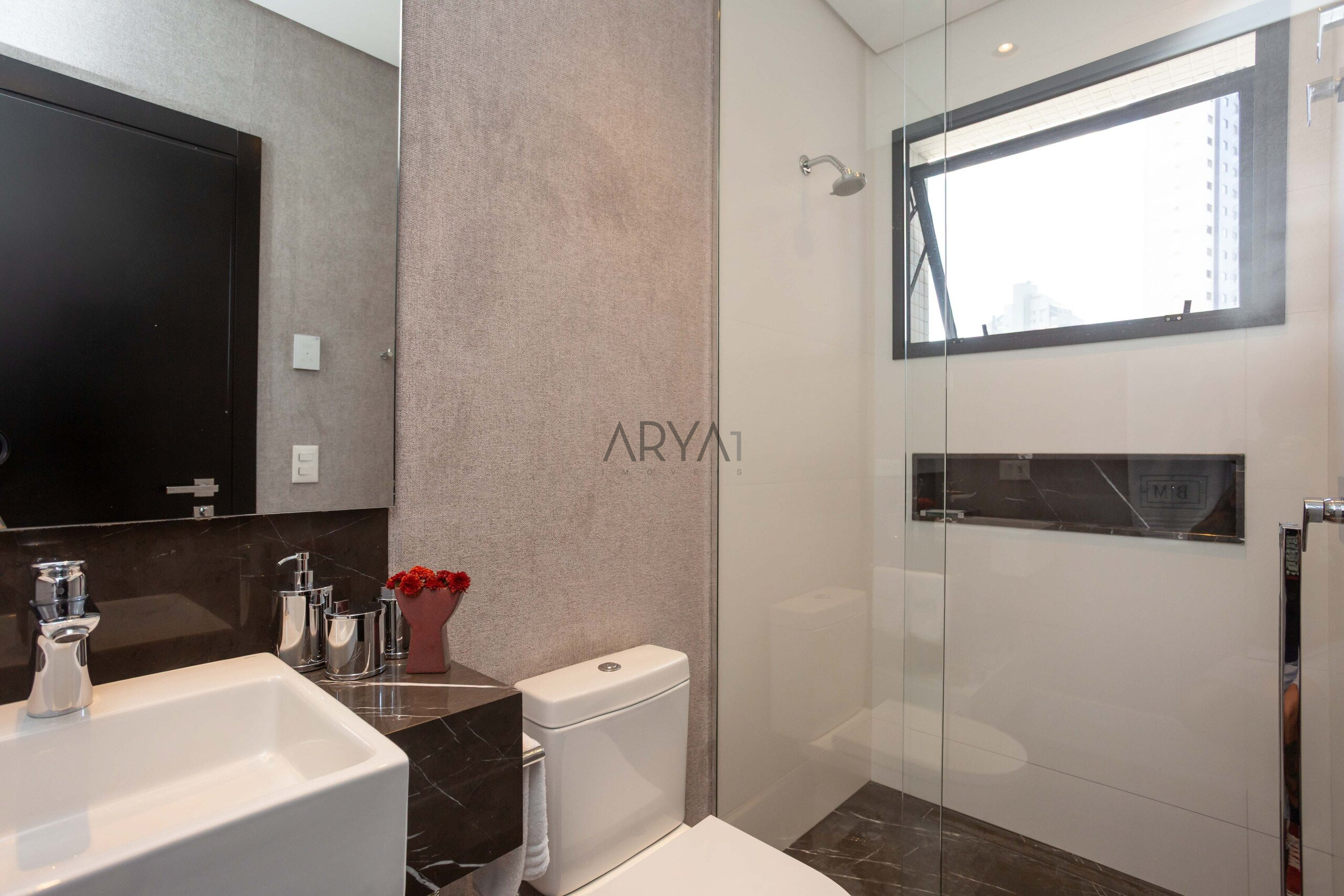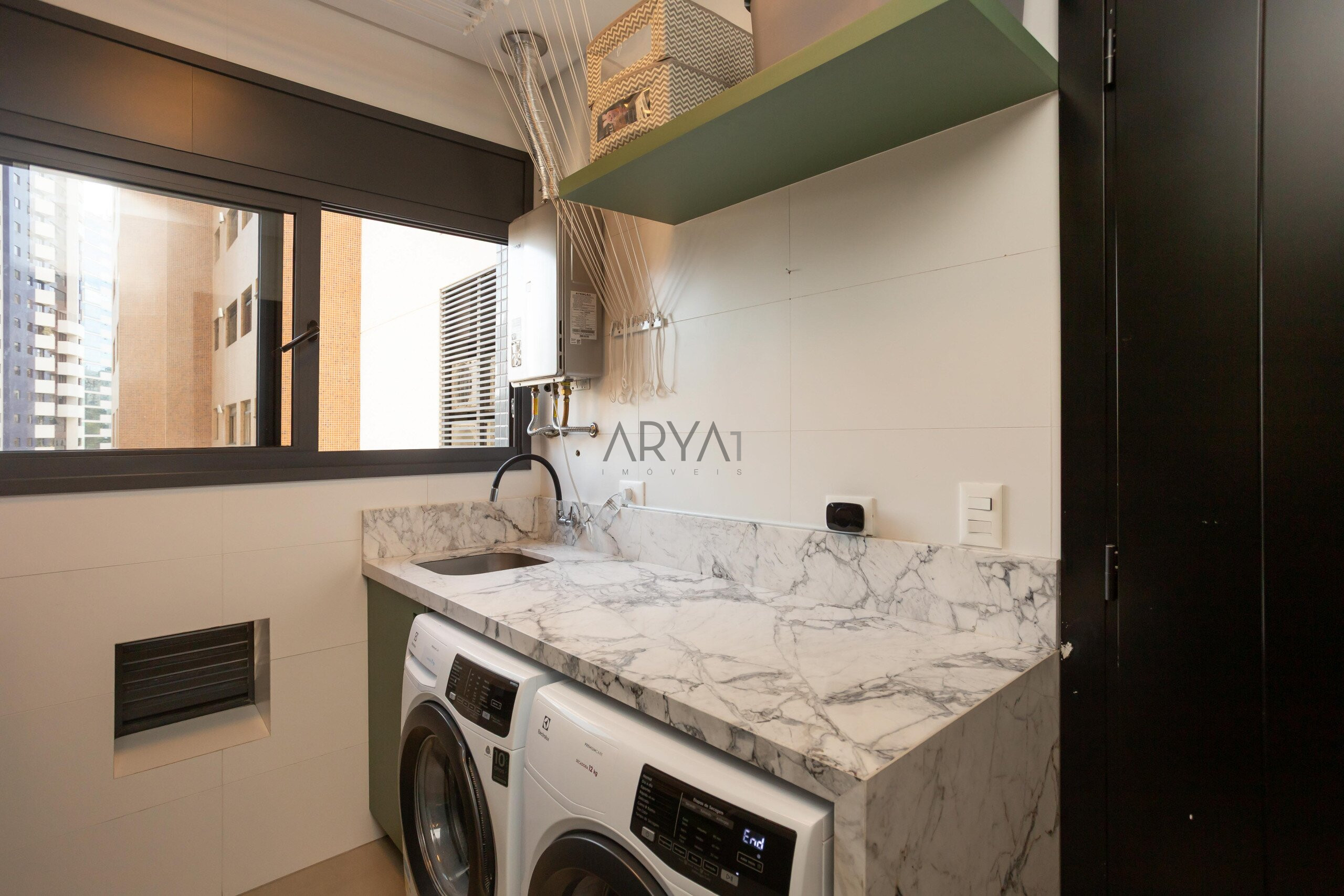 A marcenaria da área social e da cozinha é feita em laca alto brilho, destacando o design moderno e elegante do espaço. O projeto luminotécnico em LED valoriza os ambientes e reforça a atmosfera acolhedora do imóvel. No quesito tecnologia, o apartamento dispõe de ar-condicionado, persiana automatizada na área gourmet, cortina e blackout automáticos na suíte master, além de telas solares automatizadas no banheiro da suíte master.