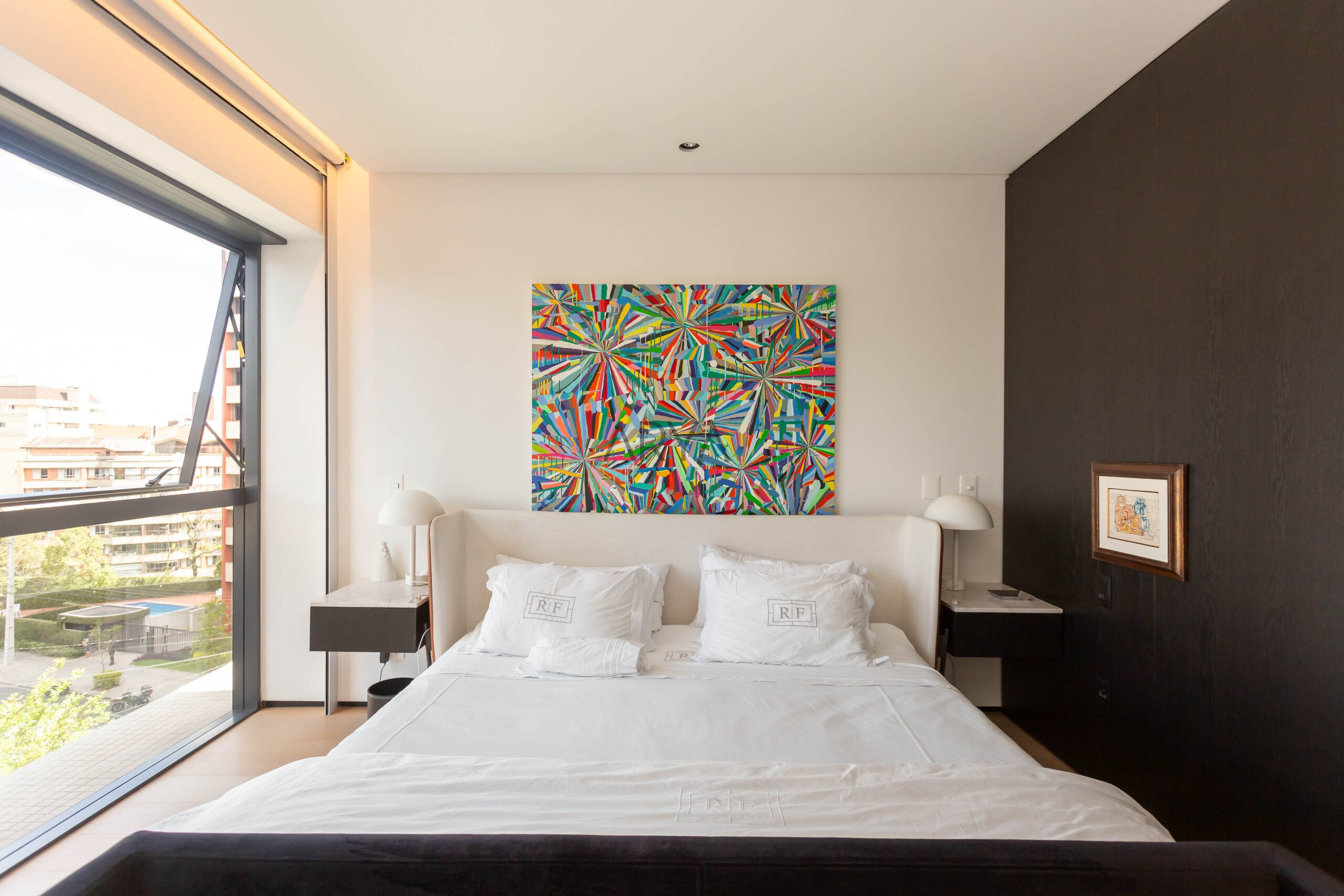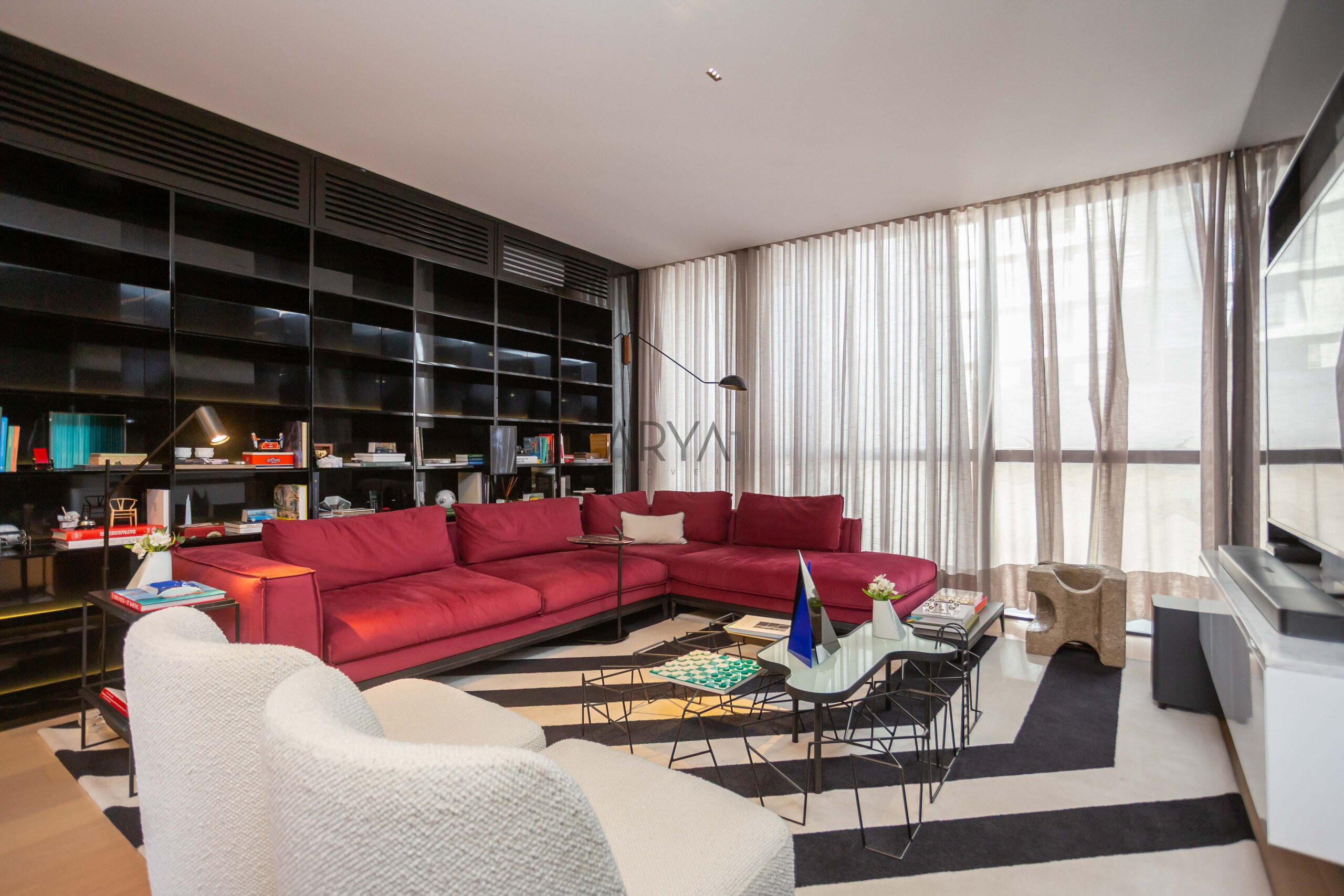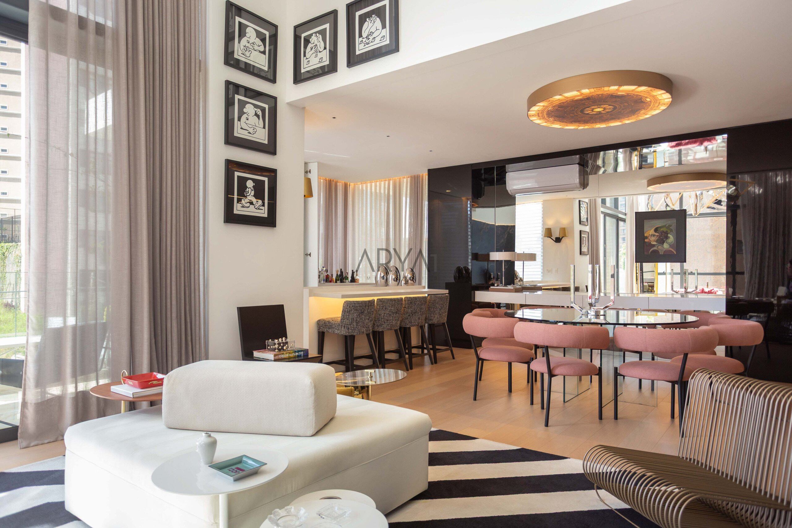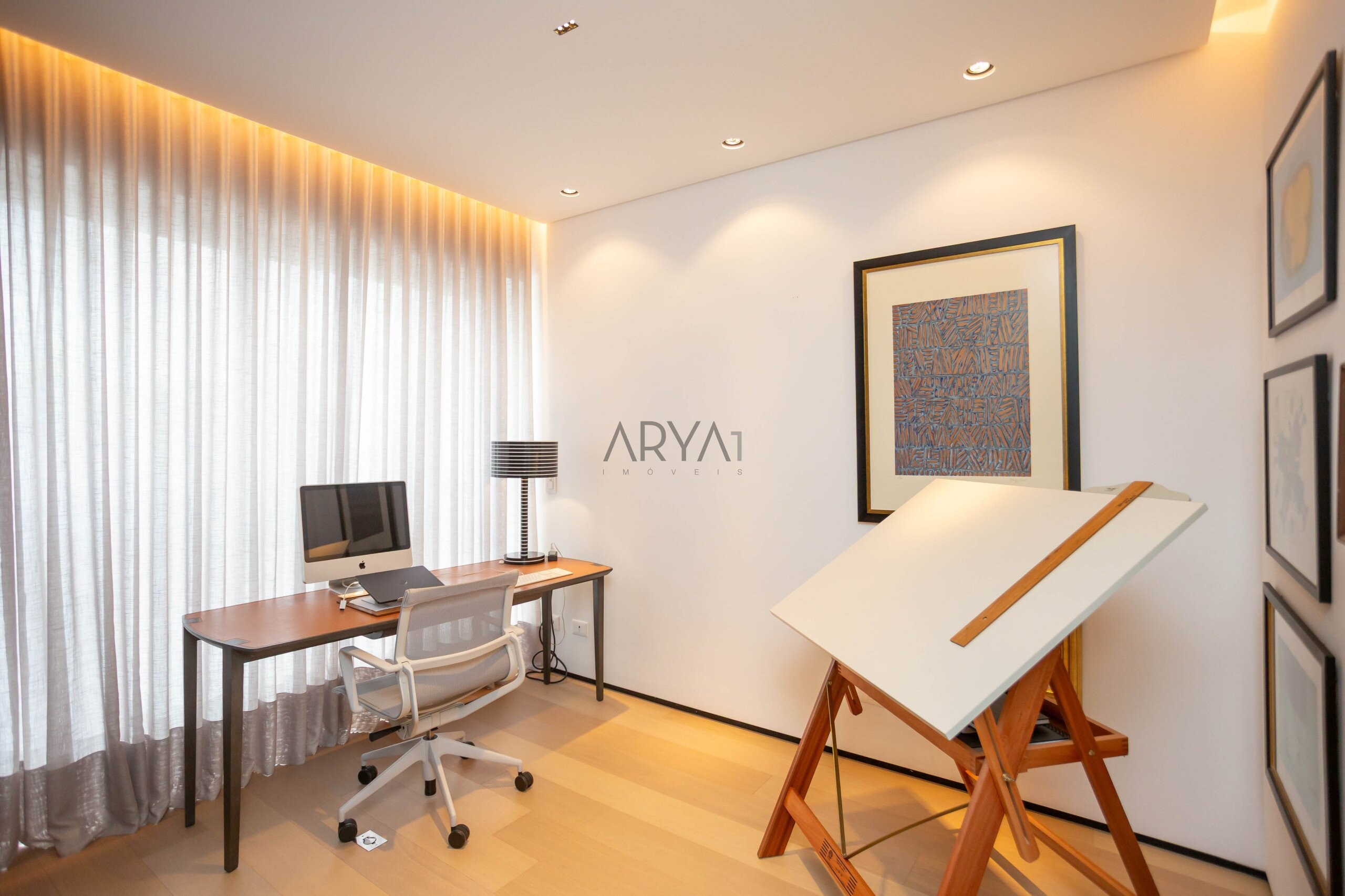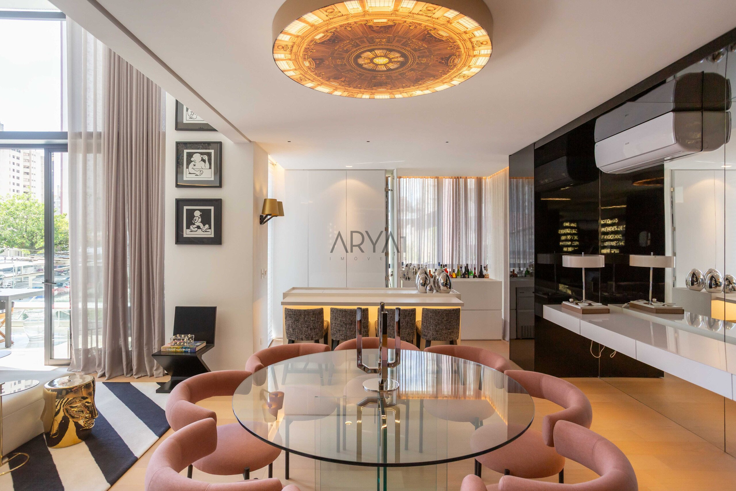 A marcenaria da área social e da cozinha é feita em laca alto brilho, destacando o design moderno e elegante do espaço. O projeto luminotécnico em LED valoriza os ambientes e reforça a atmosfera acolhedora do imóvel. No quesito tecnologia, o apartamento dispõe de ar-condicionado, persiana automatizada na área gourmet, cortina e blackout automáticos na suíte master, além de telas solares automatizadas no banheiro da suíte master.